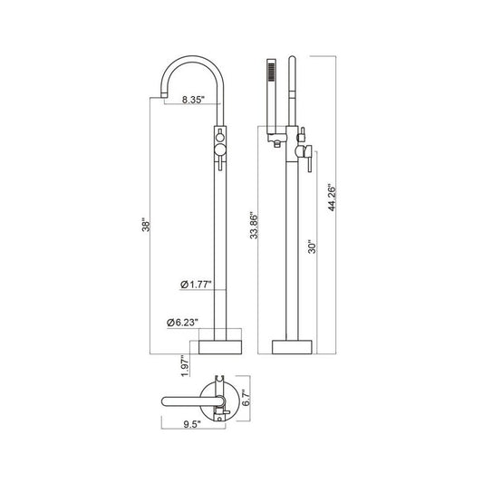 Ratel 7" x 44" Chrome Floor-Mounted Bathtub Faucet With Hand Shower