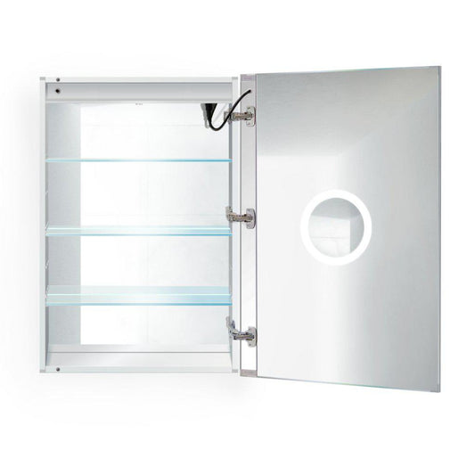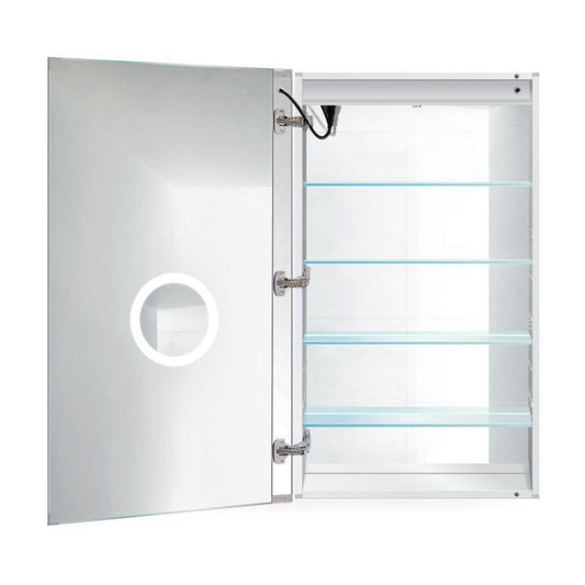 Aquadom Signature Royale Single View 24" x 40" Rectangular Left Hinged Medicine Cabinet With Lighting, Defogger, Integrated LED 3X Magnifying Mirror And Electrical Outlet with USB