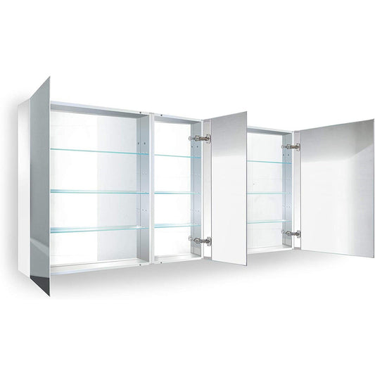 Krugg Reflections Plaza 72" x 30" Tri-View Left-Right-Right Opening Rectangular Recessed/Surface-Mount Medicine Cabinet Mirror