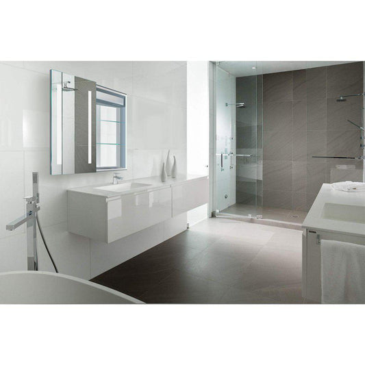 Krugg Reflections Svange 36" x 36" 5000K Single Bi-View Left Opening Recessed/Surface-Mount Illuminated Silver Backed LED Medicine Cabinet Mirror With Built-in Defogger, Dimmer and Electrical Outlet