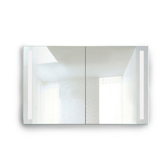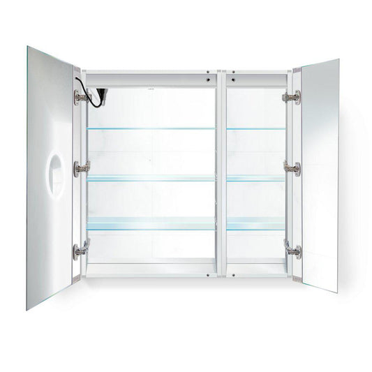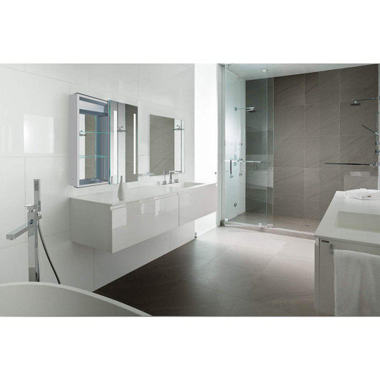 Krugg Reflections Rolls 48" x 30" Double Dual Opening Rectangular Recessed/Surface-Mount Illuminated Silver Backed LED Medicine Cabinet Mirror With Built-in Defogger, Dimmer and Electrical Outlet