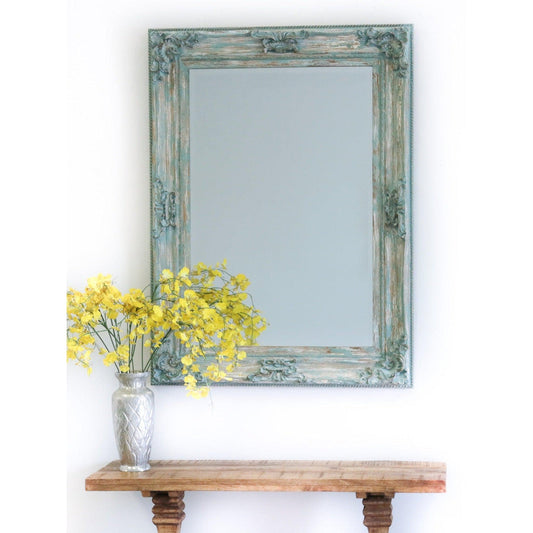 SBC Decor Beaumont 32" x 44" Wall-Mounted Wood Frame Vanity Wall Mirror In Distressed French Blue Finish