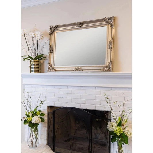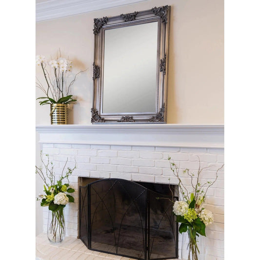 SBC Decor Beaumont 32" x 44" Wall-Mounted Wood Frame Vanity Wall Mirror In Antique Silver Finish