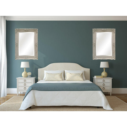 SBC Decor Beaumont 32" x 44" Wall-Mounted Wood Frame Vanity Wall Mirror In Distressed French Ivory Finish