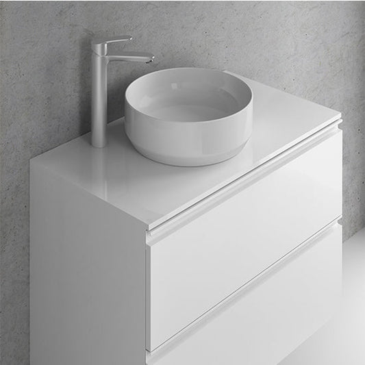 Royo Nysa 14" Modern Round Gloss White Ceramic Vessel Sink