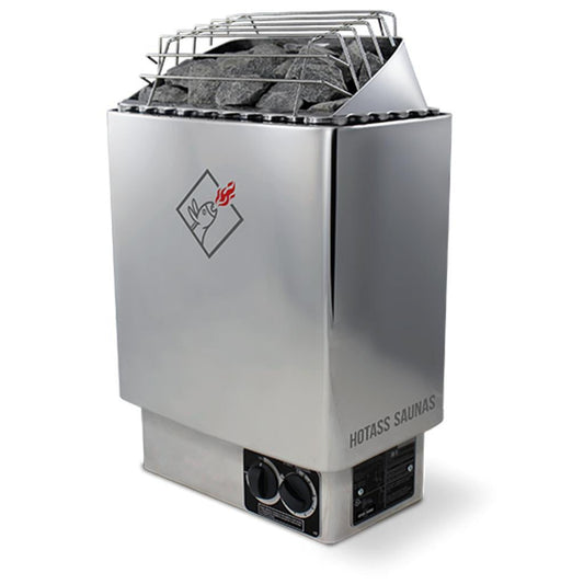 Hotass Saunas HomeHeat 16" x 11" 3kW 240V 1PH Stainless Steel Wall-Mounted Electric Sauna Heater With Whisper-Quiet Built-in Time and Temperature Controls and 45 Pounds of Magmatic Rock