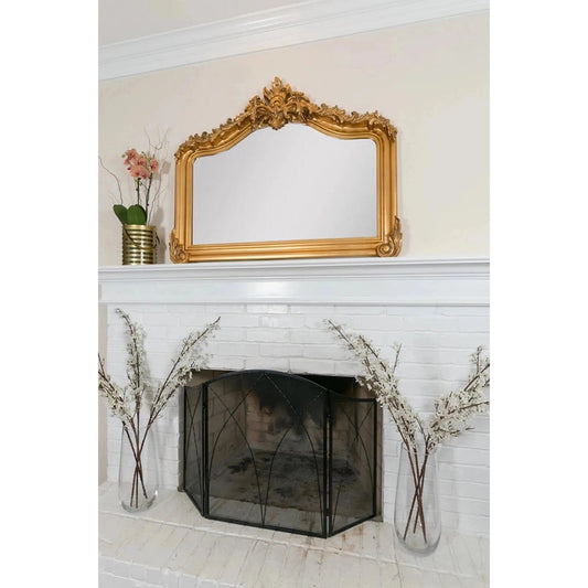 SBC Decor Artemis 28" x 43" Wall-Mounted Wood Frame Dresser Mirror In Antique Gold Finish