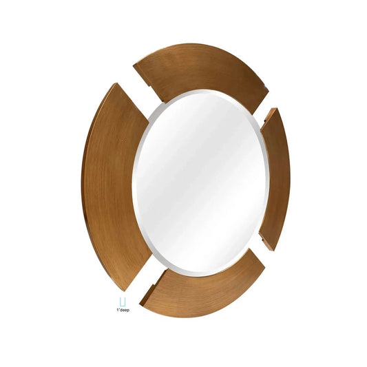 SBC Decor Capri 39" Wall-Mounted Wood Frame Round Dresser Mirror In Brushed Gold Finish