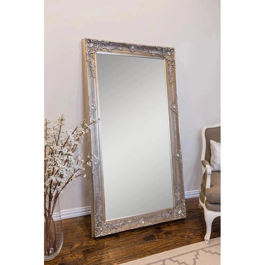 SBC Decor Blenheim 38" x 86" Wall-Mounted Wood Frame Leaner Dresser Mirror In Satin Silver Finish