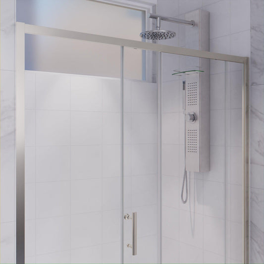 ANZZI Longboat Series 60" x 76" Semi-Frameless Rectangular Brushed Nickel Sliding Shower Door With Handle and Tsunami Guard