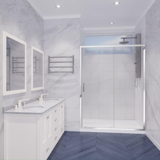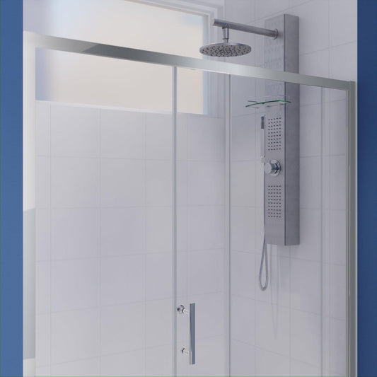 ANZZI Longboat Series 60" x 76" Semi-Frameless Rectangular Polished Chrome Sliding Shower Door With Handle and Tsunami Guard