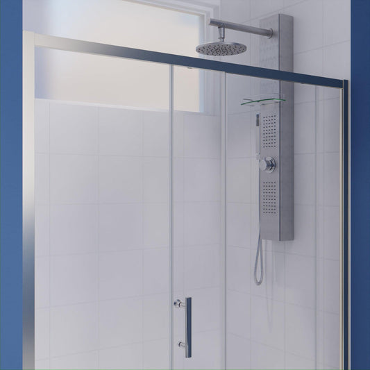 ANZZI Padrona Series 60" x 76" Frameless Rectangular Polished Chrome Sliding Shower Door With Handle and Tsunami Guard