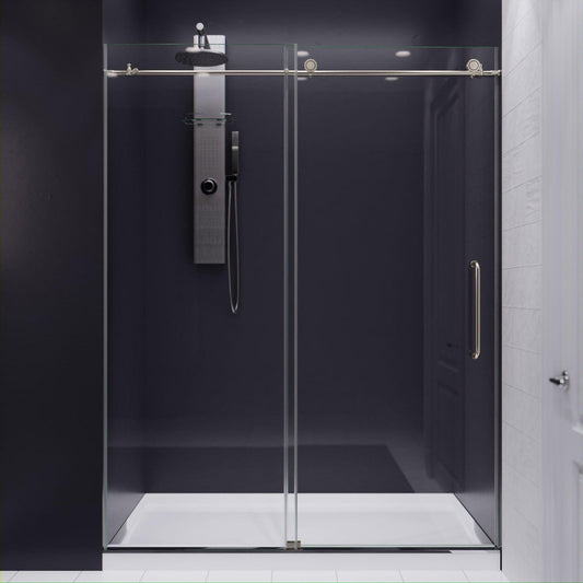ANZZI Padrona Series 60" x 76" Frameless Rectangular Brushed Nickel Sliding Shower Door With Handle and Tsunami Guard