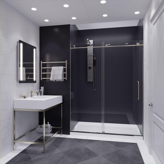 ANZZI Leon Series 60" x 76" Frameless Rectangular Brushed Nickel Sliding Shower Door With Handle and Tsunami Guard