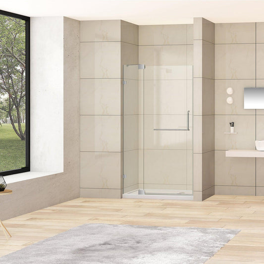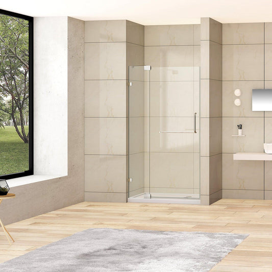 Vinnova Milano 36" x 72" Polished Chrome In-line Hinged Frameless Shower Door With Fixed Glass on One Side