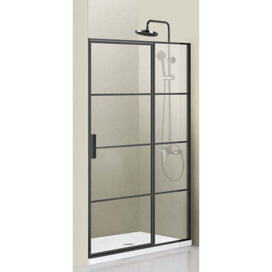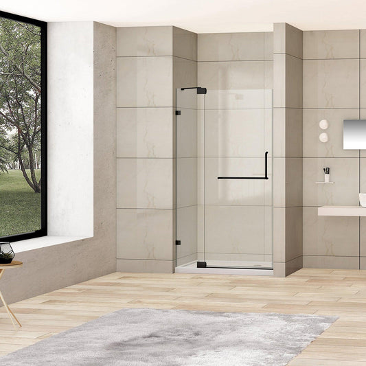 Vinnova Milano 36" x 72" Matte Black In-line Hinged Frameless Shower Door With Fixed Glass on One Side
