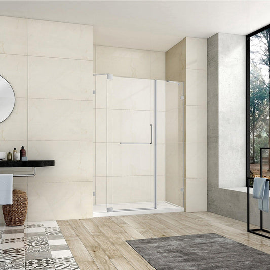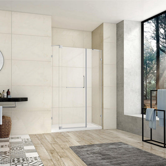 Vinnova Milano 48" x 72" Polished Chrome In-line Hinged Frameless Shower Door With Fixed Glass on Both Sides