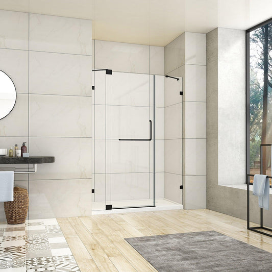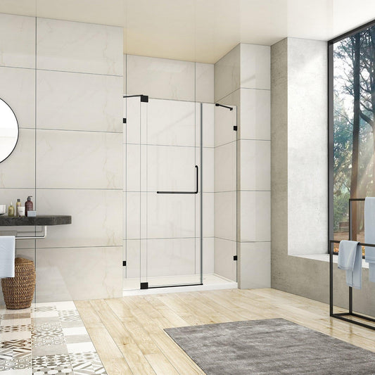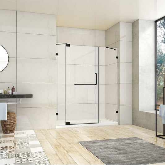 Vinnova Milano 48" x 72" Matte Black In-line Hinged Frameless Shower Door With Fixed Glass on Both Sides