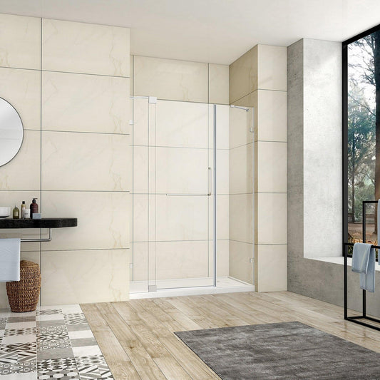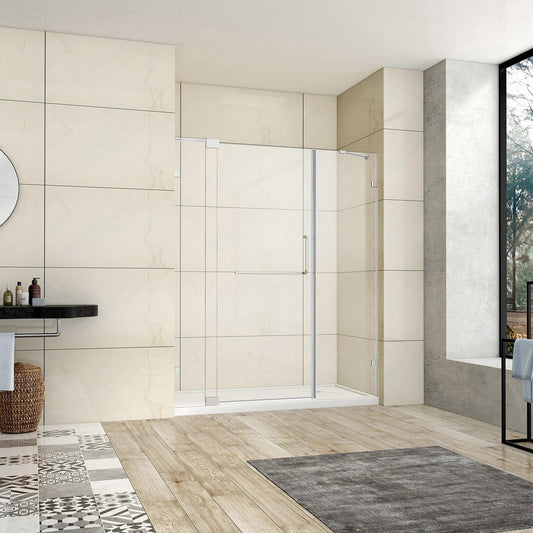 Vinnova Milano 60" x 72" Polished Chrome In-line Hinged Frameless Shower Door With Fixed Glass on Both Sides