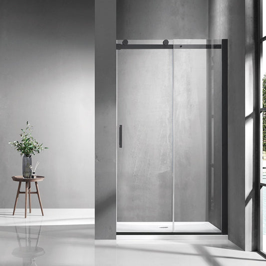 Vinnova Rovigo 48" x 76" Matte Black Single Sliding Frameless Shower Door