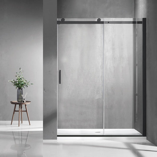 Vinnova Rovigo 60" x 76" Matte Black Single Sliding Frameless Shower Door