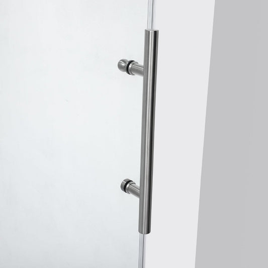 Vinnova Milano 48" x 72" Brushed Nickel In-line Hinged Frameless Shower Door With Fixed Glass on Both Sides