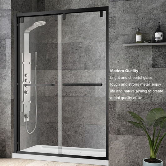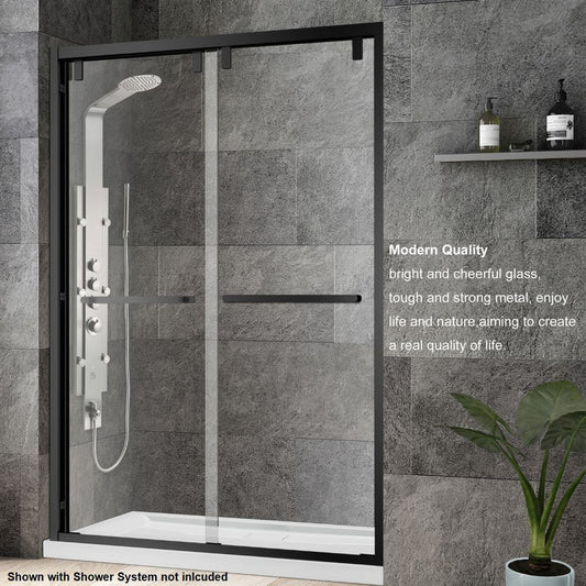 Vinnova Spezia 48" x 76" Matte Black Reversible Double Sliding Bypass Frameless Shower Door