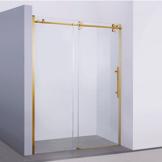 Vinnova Massa 60" x 76" Brushed Gold Reversible Single Sliding Frameless Shower Door