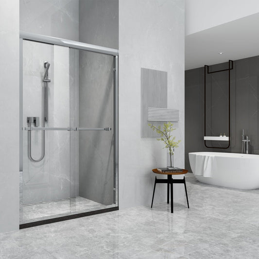 Vinnova Spezia 48" x 76" Polished Chrome Reversible Double Sliding Bypass Frameless Shower Door