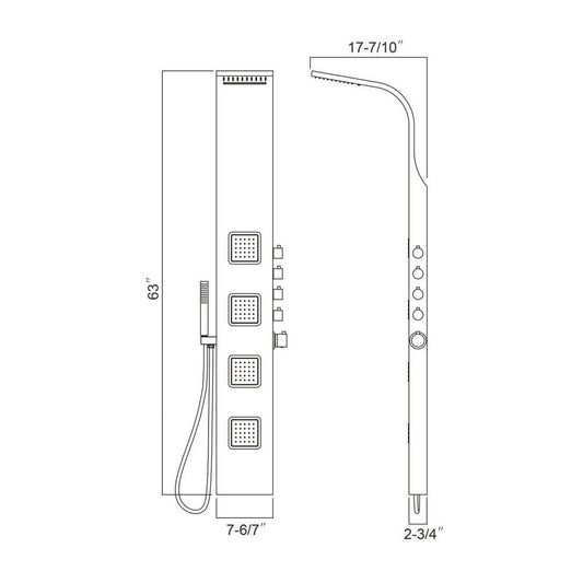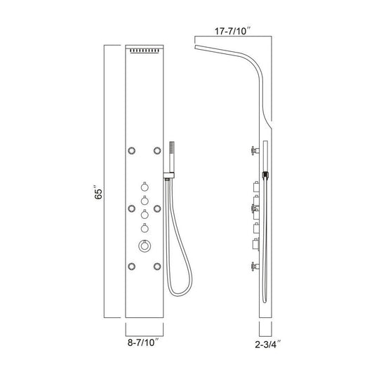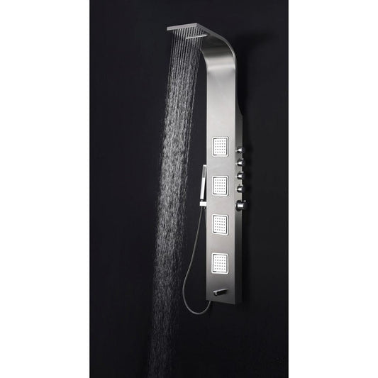 Ratel 65" Brushed Stainless Steel Shower Panel With Built-in Head Shower, Waterfall and 6 Massage Jets