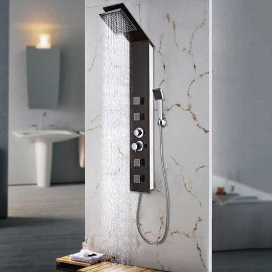 Ratel 61" Wood Grain Tempered Glass Shower Panel Finish With Built-in Head Shower and 4 Massage Jets