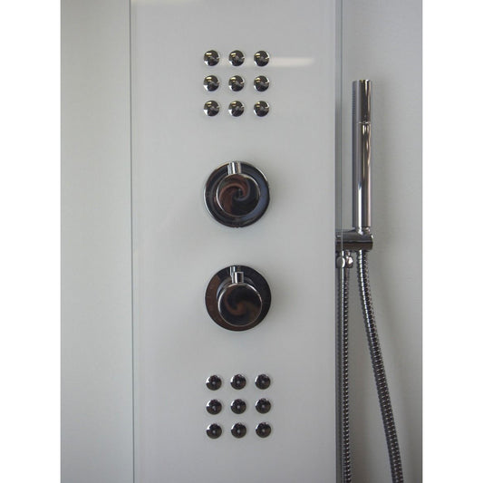 Ratel 63" White Tempered Glass Shower Panel With Round Head Shower and 2-Set Massage Jets