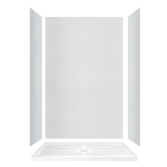WoodBridge 60" W x 36" L 96" H Matte White Finish Solid Surface Staggered Vertical Pattern 3-Panel Shower Wall Kit