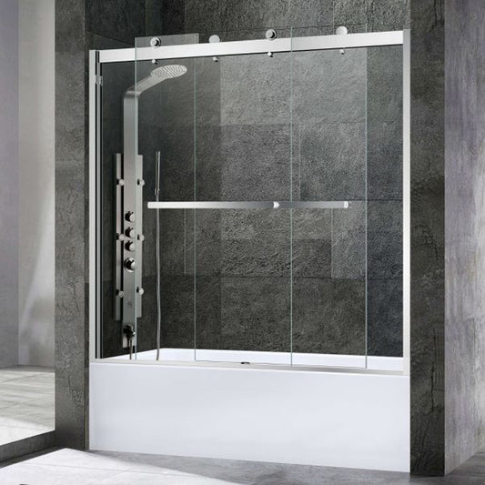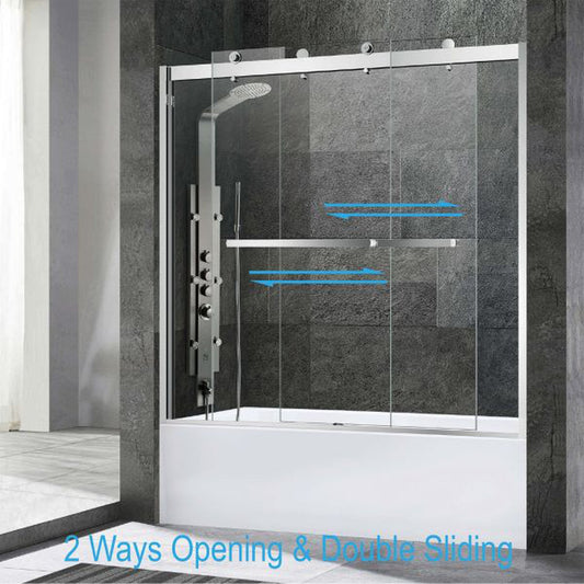 WoodBridge 60" W x 62" H Clear Tempered Glass 2-Way Opening and Double Sliding Frameless Shower Door With Polished Chrome Hardware Finish