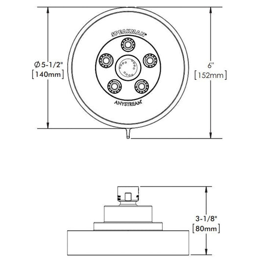 Speakman Retro 2.5 GPM 6-Plunger Solid Brass Construction Polished Chrome Shower Head