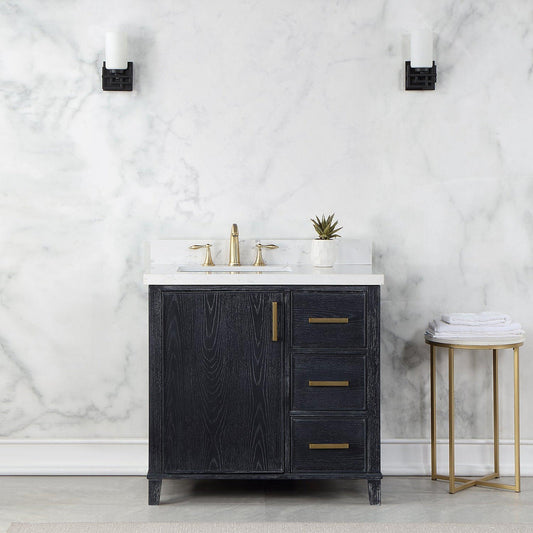 Altair Weiser 36" Black Oak Freestanding Single Bathroom Vanity Set With Aosta White Composite Stone Top, Single Rectangular Undermount Ceramic Sink, Overflow, and Backsplash