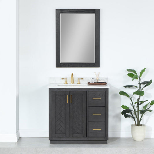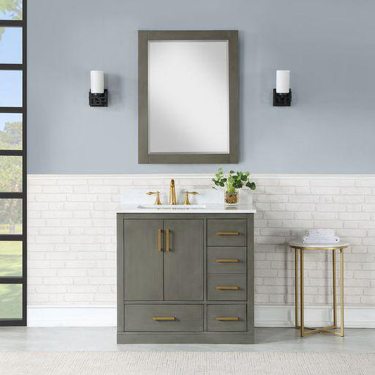 Altair Monna 36" Gray Pine Freestanding Single Bathroom Vanity Set With Mirror, Aosta White Composite Stone Top, Rectangular Undermount Ceramic Sink, Overflow, and Backsplash