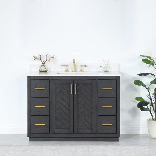 Altair Gazsi 48" Black Oak Freestanding Single Bathroom Vanity Set With Elegant Composite Grain White Stone Top, Rectangular Undermount Ceramic Sink, Overflow, and Backsplash