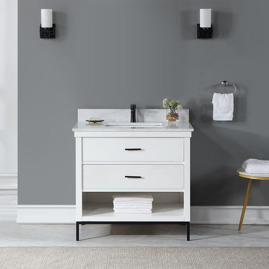 Altair Kesia 36" White Freestanding Single Bathroom Vanity Set With Stylish Aosta White Composite Stone Top, Rectangular Undermount Ceramic Sink, Overflow, and Backsplash
