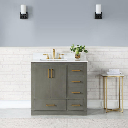 Altair Monna 36" Gray Pine Freestanding Single Bathroom Vanity Set With Aosta White Composite Stone Top, Rectangular Undermount Ceramic Sink, Overflow, and Backsplash