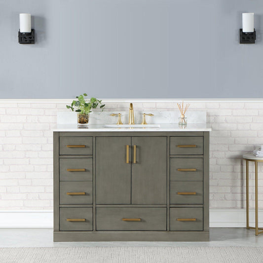 Altair Monna 48" Gray Pine Freestanding Single Bathroom Vanity Set With Aosta White Composite Stone Top, Rectangular Undermount Ceramic Sink, Overflow, and Backsplash