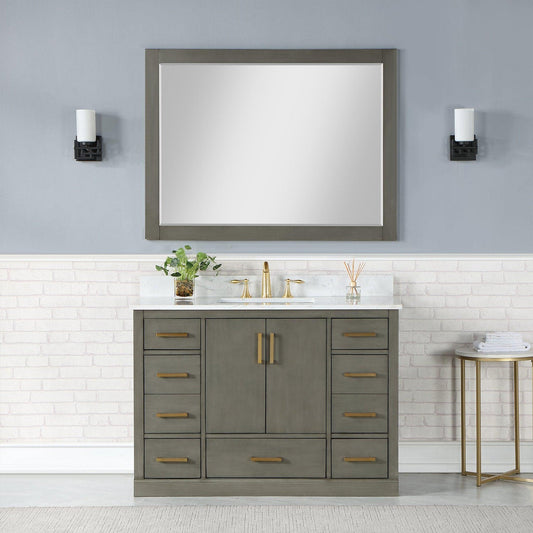 Altair Monna 48" Gray Pine Freestanding Single Bathroom Vanity Set With Mirror, Aosta White Composite Stone Top, Rectangular Undermount Ceramic Sink, Overflow, and Backsplash