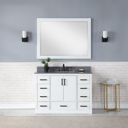 Altair Monna 48" White Freestanding Single Bathroom Vanity Set With Mirror, Concrete Grey Composite Stone Top, Rectangular Undermount Ceramic Sink, Overflow, and Backsplash