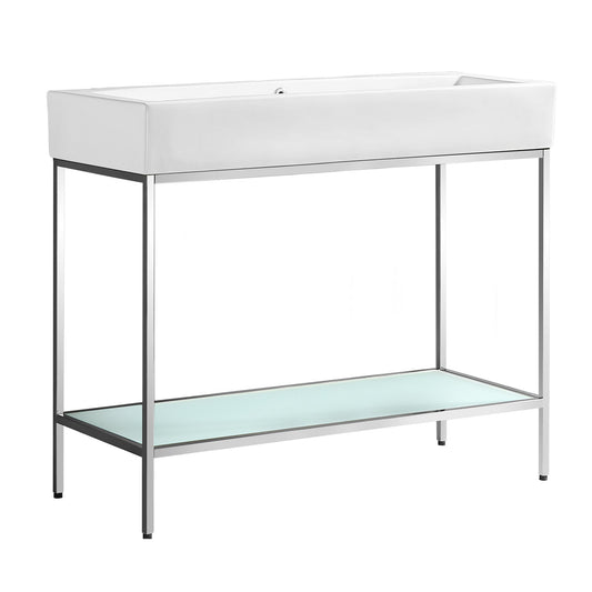Swiss Madison Pierre 40" x 34" Freestanding White Bathroom Vanity With Ceramic Single Sink and Chrome Metal Frame