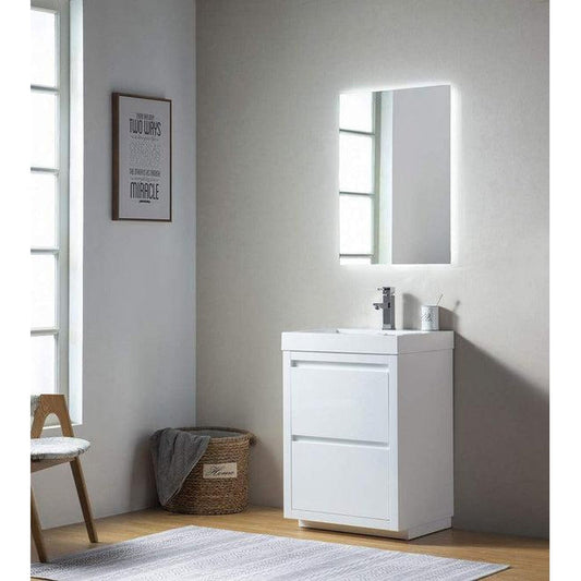 Vanity Art Annecy 24" Glossy White Floor Standing Vanity Set With White Engineered Stone Top and Integrated Single Sink