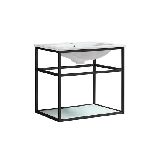 Swiss Madison Pierre 30" x 24" Wall-Mounted White Bathroom Vanity With Ceramic Single Sink and Matte Black Metal Frame