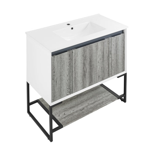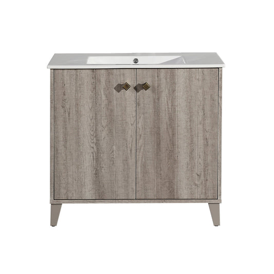 Swiss Madison Marseille 36" x 35" Freestanding Gray Oak Bathroom Vanity With Ceramic Single Sink and Stainless Steel Metal Legs