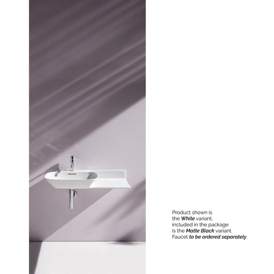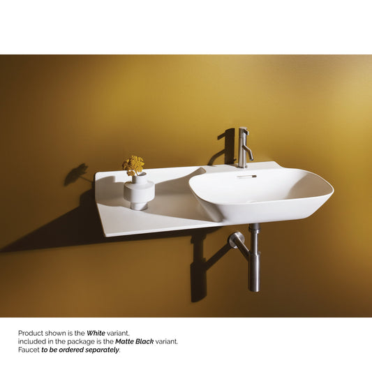 Laufen Ino 35" x 18" Matte Black Wall-Mounted Shelf-Right Bathroom Sink With Faucet Hole