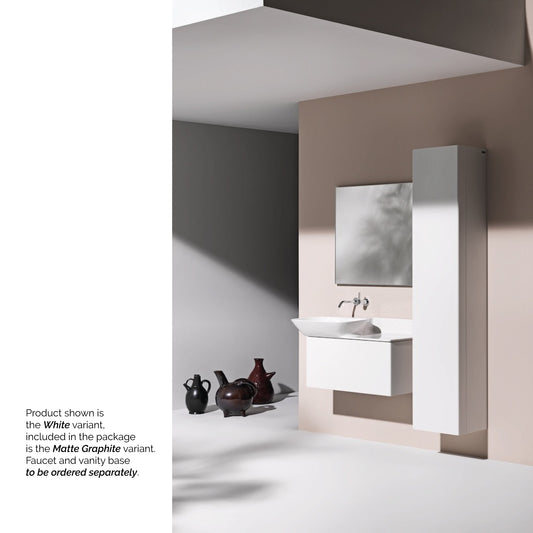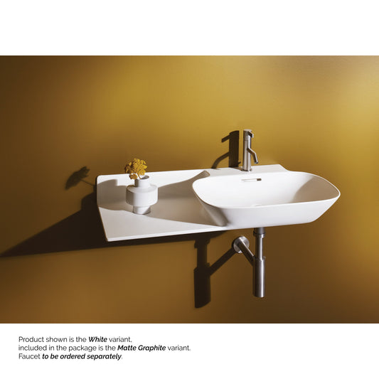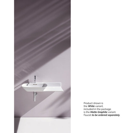 Laufen Ino 35" x 18" Matte Graphite Wall-Mounted Shelf-Right Bathroom Sink Without Faucet Hole