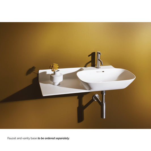 Laufen Ino 35" x 18" Matte White Wall-Mounted Shelf-Right Bathroom Sink With Faucet Hole